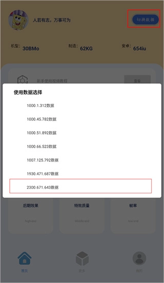 1. 于本站下载并安装帧率猫专业版app,打开该应用。接着在首页点击右上角的“切换数据”,选择位于最下方的选项。