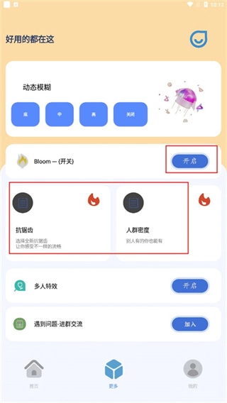 4、接着来到更多页面将页面中的特效、动态模糊都开启。