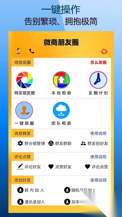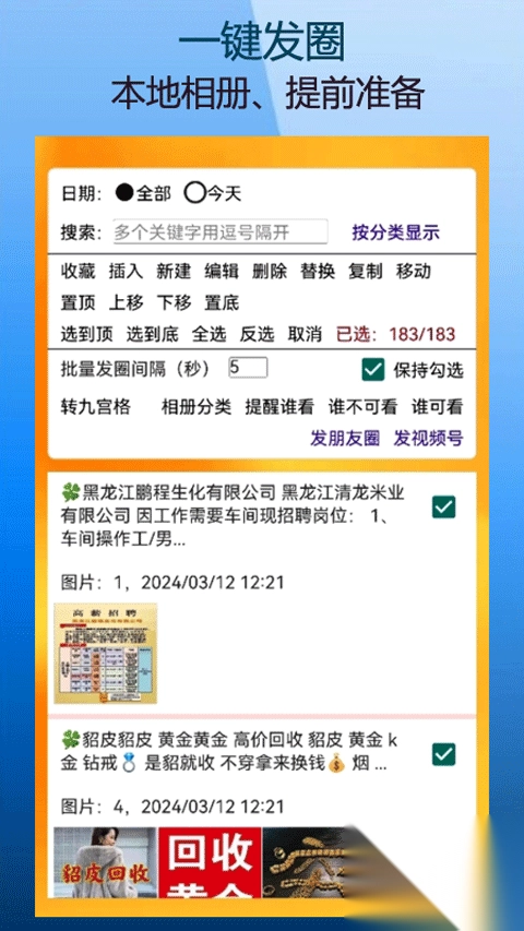 用本软件的本地相册,提前准备好发圈素材,发圈时一键同步到朋友圈