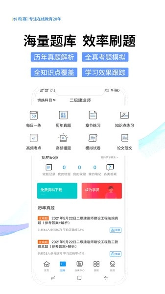 1、希赛网:看直播/做试题/考试通关神器不离手。