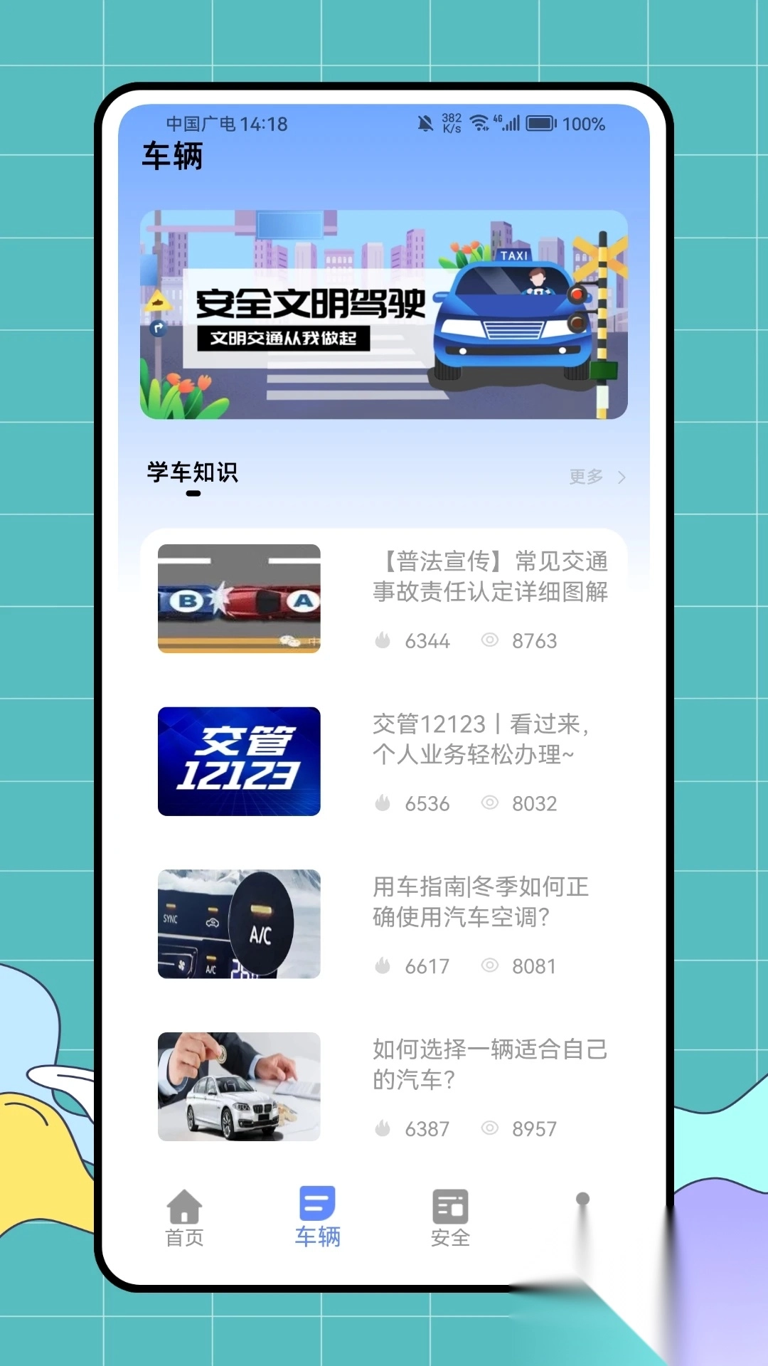 2、在车辆页面,你能随时获取各类学车知识,快速知晓多样内容。