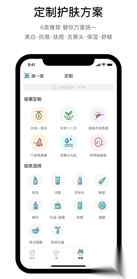 依据你的肤质状况,融合科学的护肤理念,量身定制个性化的化妆品及护肤品方案。
