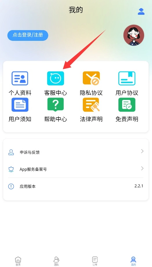 3、进入个人中心后点击客服服务选项,选择人工客服功能即可与在线工作人员建立沟通连接。