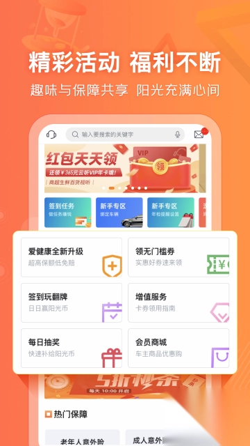 在线购买多种精选保险,包括财产险、旅行险、意外险、健康险、账户盗刷险等;