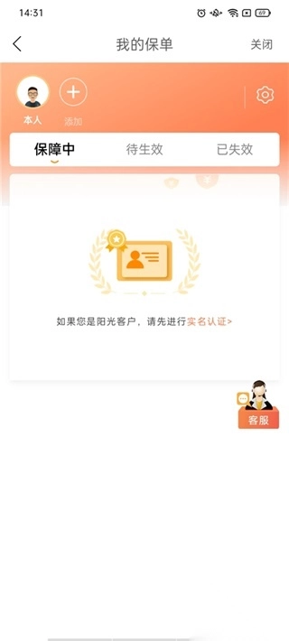 3、点击查保单服务功能,进入之后我们即可进行查看当前的保障中、待生效、已失效信息;