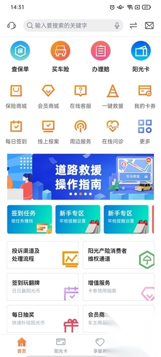 阳光车生活APP,是阳光产险专门为车主精心打造的一站式用车养车服务软件。它为用户提供了众多服务项目,像“增值服务”“理赔服务”“保险服务”等,涵盖车辆保养、保险、理赔、保单查询以及年检提醒等内容,能够充分满足用户在车辆护理、保养等日常方面的需求。