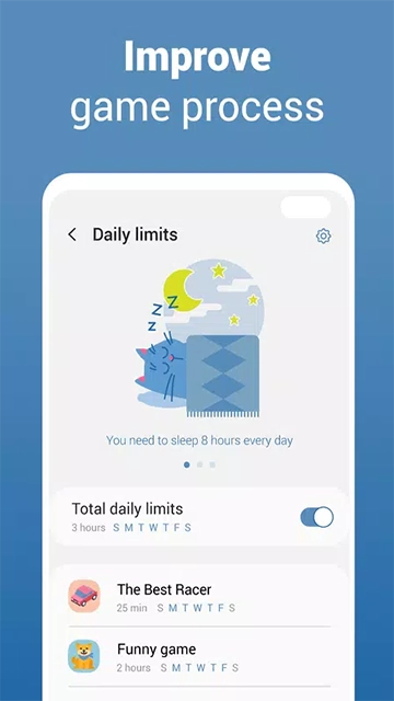 5、每日限额支持设置游戏时间限制,可以按游戏总时长或者针对单款游戏分别设置。当达到设定时长时,系统会自动发送提醒。这一功能适合需要控制游戏时间的人群,为合理规划娱乐时间提供了便利。
