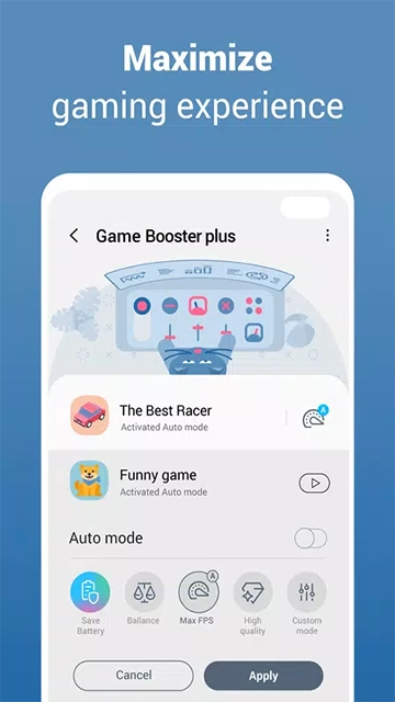 三星游戏插件最新版本,是一款自三星手机提取而来的游戏应用优化加速工具。想必不少玩家在玩游戏过程中,都遭遇过游戏卡顿,或是资源占用过多的状况。而这款软件能够出色地优化此类问题。它的使用方法极其简便,只需打开软件,选择相应功能进行下载即可。并且软件功能丰富多样,大家赶快前来下载体验一番吧。