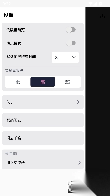 添加背景音乐:多个轻音乐,同时也支持用户从手机音乐中选择音乐作为背景音乐。用户可以将音乐拖动至音频轨道,并调整音乐的起始时间和音量。