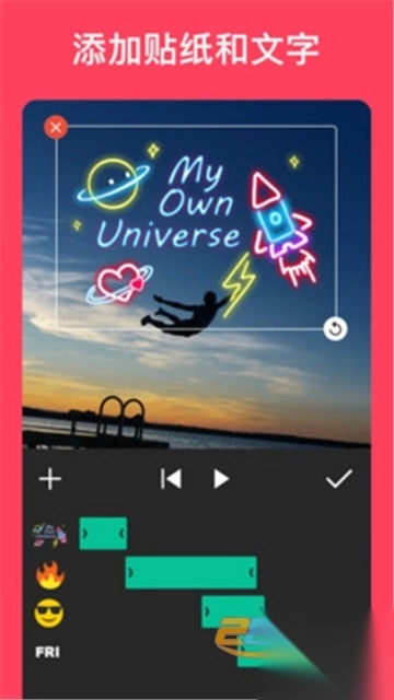 - 随着时间线功能,轻松同步文字和表情符号视频。