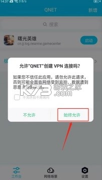 6、回到Qnet后,点击【启动】按钮,会弹出“是否允许Qnet创建VPN连接”弹窗,点击【始终允许】即可。