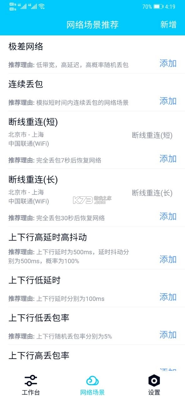 8、点击右上角的【新增】也可以自定义网络环境模板,可以模拟不同的地区、不同的运营商、不同的网络场景。