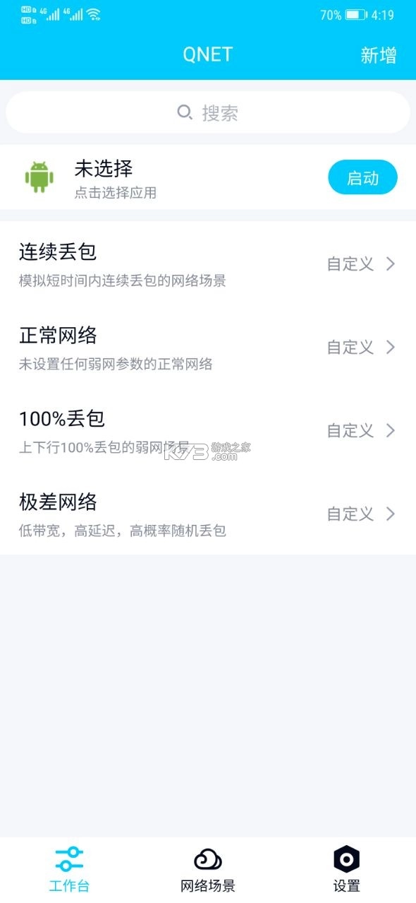 1、在本站完成Qnet的下载与安装后,开启Qnet,接着挑选想要测试的应用。