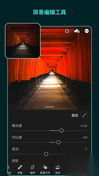 此外,Lightroom软件的社区功能提供个性化内容与免费预设,用户还能关注心仪的作者,从中获取灵感。有需求的朋友欢迎下载使用。1、能够轻松编辑大型相册,可把编辑操作一键复制应用到多张照片上,简单几步,就能让相册里的照片呈现出相同效果。
