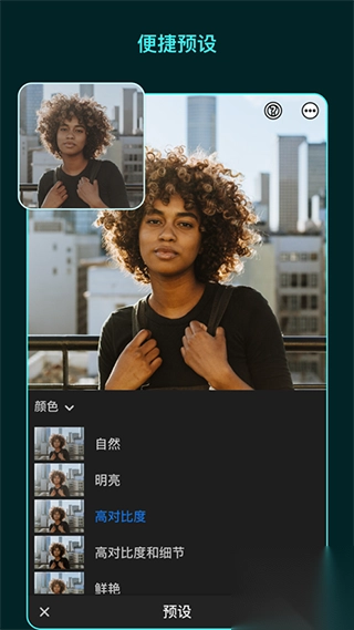 2、预设:只需轻触照片编辑器,即可大幅度修图,获得美图;