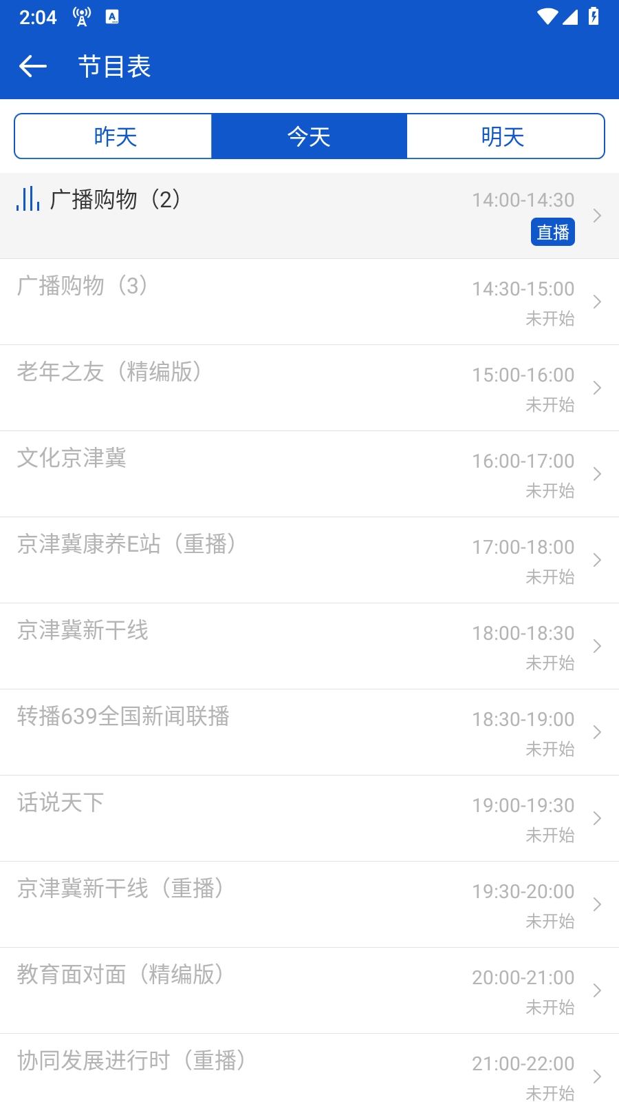 3. 在节目表界面,能够查看昨日、今日以及明日的节目单,轻点播放按钮就能开启收听。