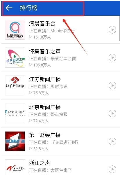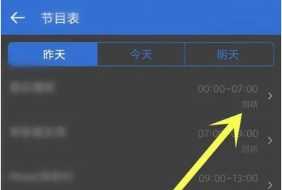 5.如果错过了某个节目,可以点击回听按钮,选择节目右侧的回听图标,即可收听广播回放