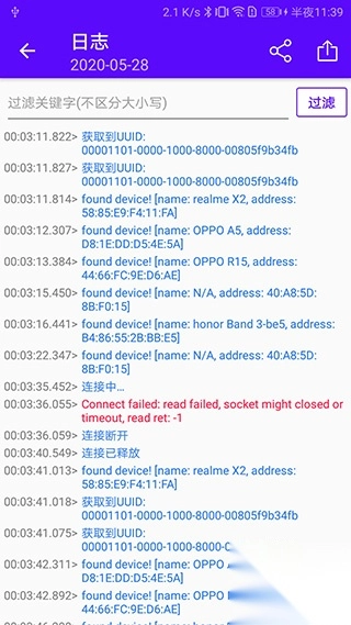 4、具备实时日志打印与日志过滤功能,能够随心切换不同编码格式进行显示,并且提供实时收发数据包的计数。此外,日志已完成持久化处理,支持按多日期打包分享或导出。如此一来,再也不用担心被无端指责,毕竟证据在握,心中有底。