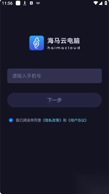 1. 于本站下载并安装海马云电脑最新版本,启动软件后输入手机号码以获取验证码。