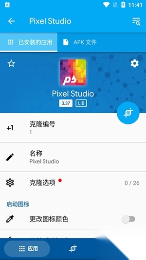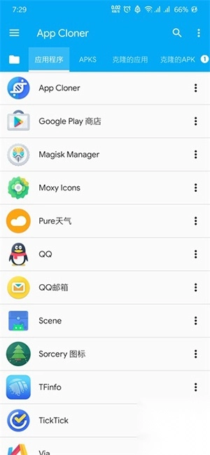 1. 用户进入该应用界面后,手机里已安装的所有APP都会以列表形式展示出来,用户只需从中挑选想要克隆的某个软件并点击就行。
