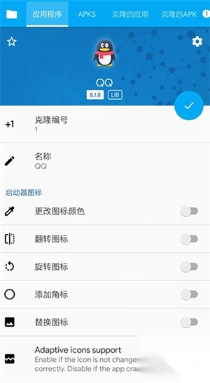 2. 就拿日常广泛使用的QQ来说,用户能够通过App Cloner对其名称、图标颜色等方面开展个性化设置。