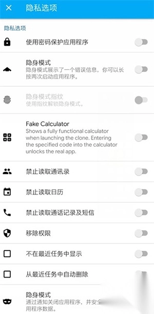 4. 例如,在应用的隐私设置部分,用户可以选择以密码、指纹的形式开启应用,并且还能对应用权限加以设置。