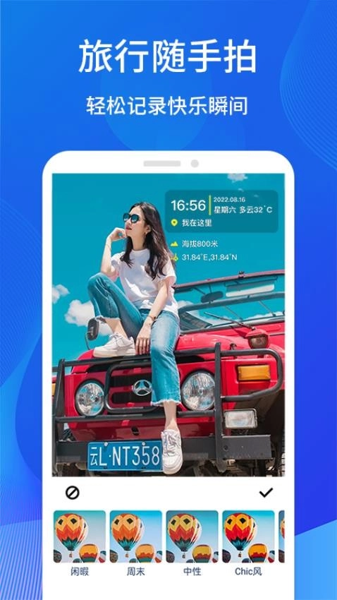 1.轻松记录:随时拍下的照片自动记录时间、地点、温度等,定格美好瞬间