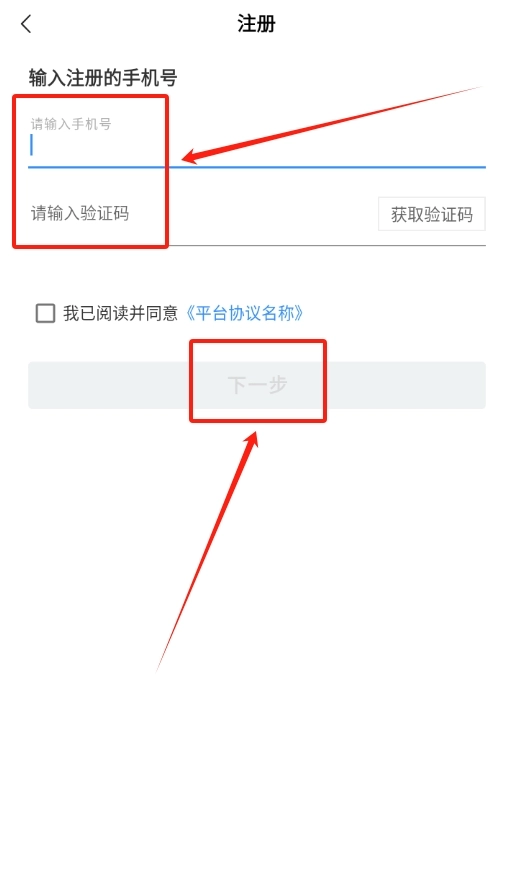 3、新用户注册时输入手机号获取验证码,填写验证码后设置密码即可完成账号注册流程。