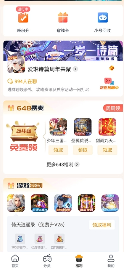 4、赚取游戏积分,完成平台任务领取各种不同的福利
