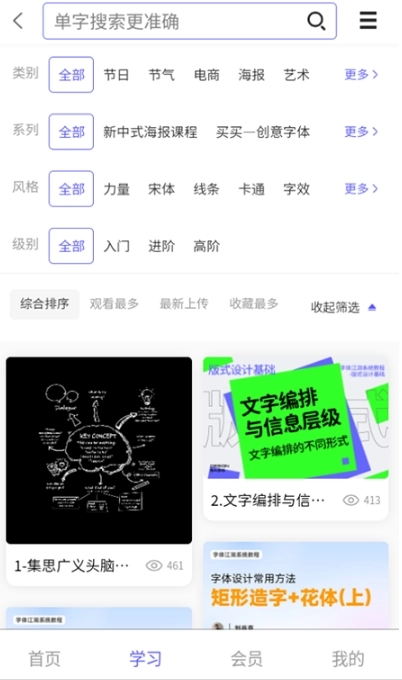 3、提供超多的字体设计免费的教学课程,可以选择喜欢的素材下载,素材非常的多样