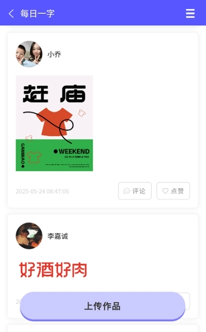 3、进入“每日一字”板块,浏览当日推荐作品,点击“搜索”输入关键词,获取相关设计灵感