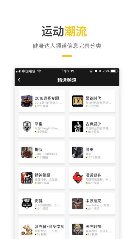 1. 在平台所提供的健身频道中,挑选自己感兴趣的频道,即可实现快速在线查看。