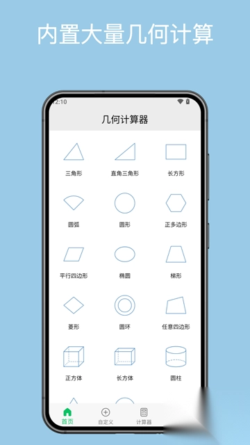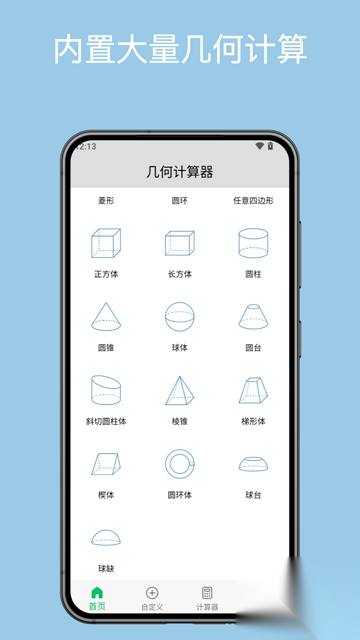 2. 涵盖平面几何与立体几何所有类型的计算,常见图形如三角形、圆形、扇形、椭圆体、棱锥、圆柱等均在支持范围内。