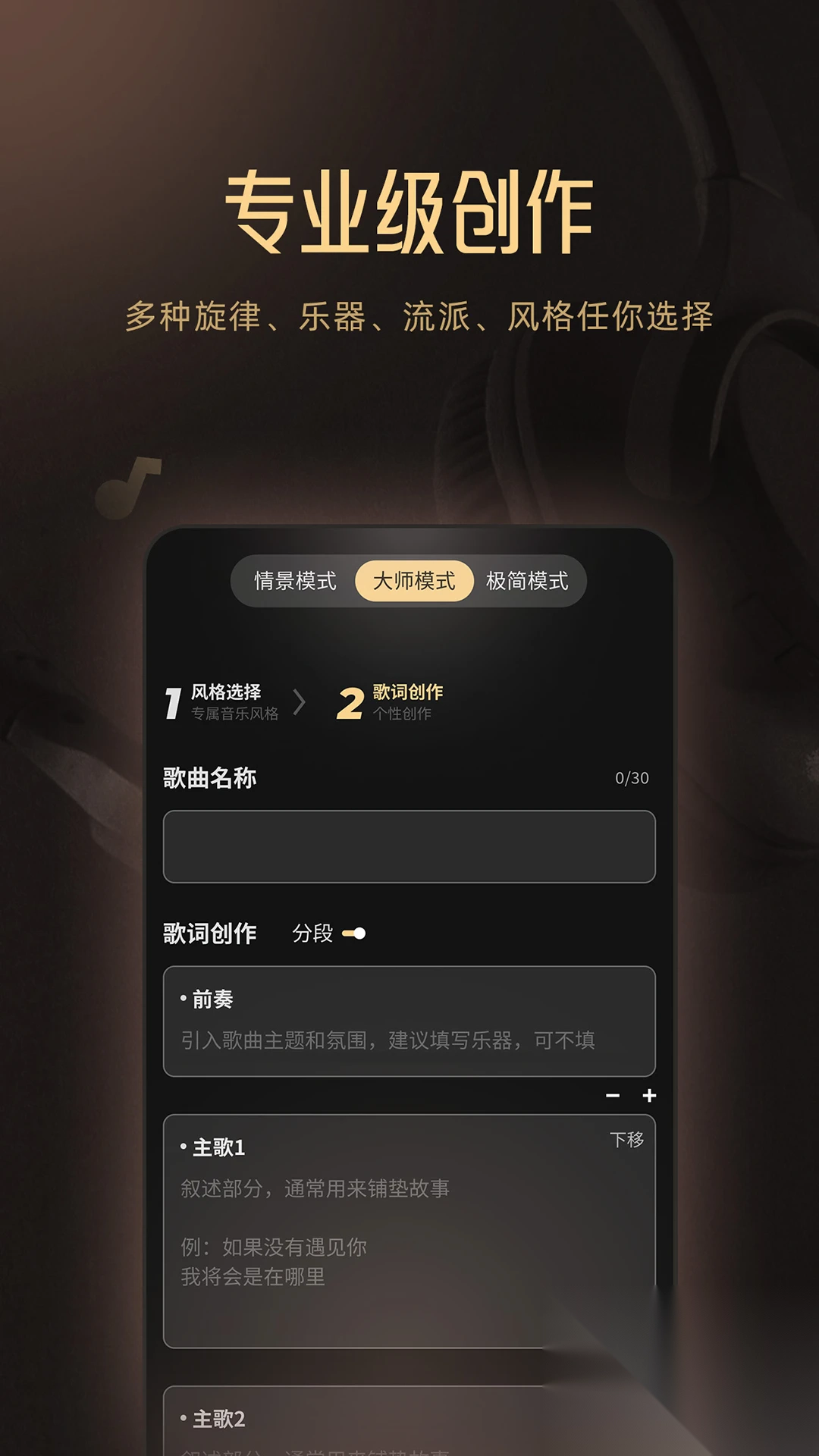 深度定制歌词结构,AI辅助创作个性化音乐杰作,满足专业音乐人的需求。