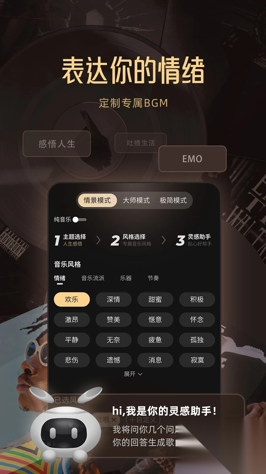 Muse AI 捕捉您的情感细节,情感转化为歌词,让每一首歌都充满灵魂和故事。