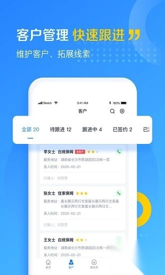 客户管理,快速跟进,维护客户、拓展线索