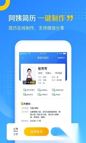 阿姨简历,一键制作,简历在线制作,支持微信分享
