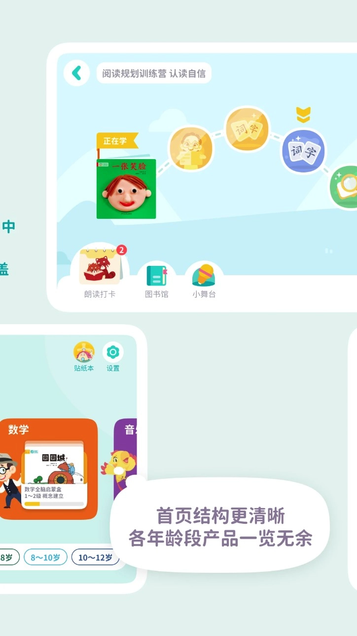 1. 首创“一茁宝盒”式学习入口,按年龄智能推荐适合孩子的阅读路径与课程。
