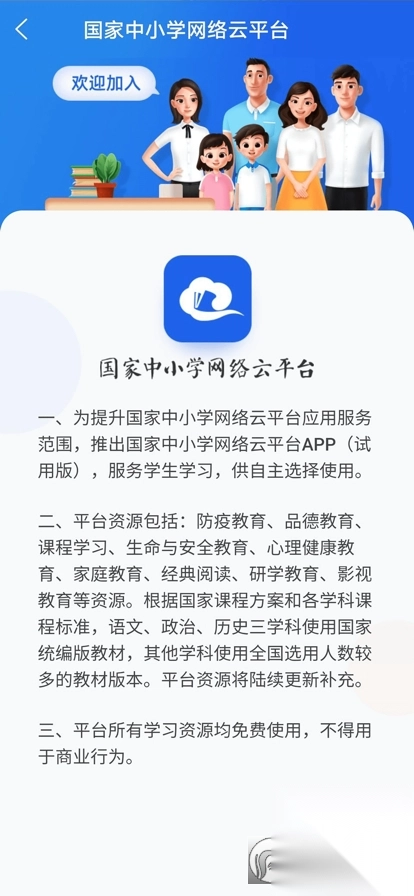 一、为扩大国家中小学网络云平台的应用服务覆盖范围,现推出国家中小学网络云平台APP(试用版本),旨在服务学生学习,学生可根据自身需求自主选择是否使用。