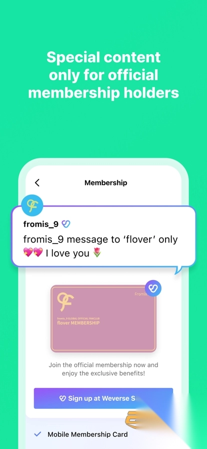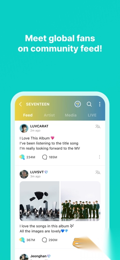 于Weverse平台创建粉丝相关帖子,同时分享你心仪明星的绝美照片。