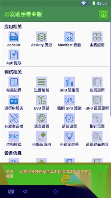 安卓免root版开发助手,堪称高效开发利器。它集合反编译、信息查看、apk提取等多项实用功能于一身,布局设计贴合用户习惯,操作简单便捷,且不占内存。不仅支持查看应用信息与系统参数,还能快速开启或关闭开发者选项,助力您轻松驾驭安卓开发工作,大幅提升开发效率,绝对是您不容错过的得力工具。