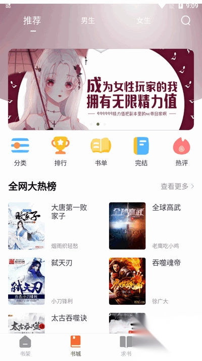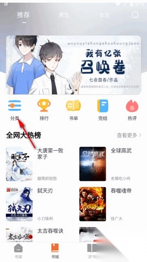 2. 轻点下方的【书城】,接着点击【分类】,挑选自己想看的类型。