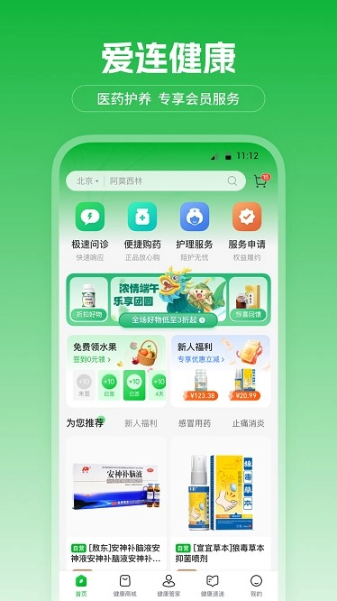 3、具备线上问诊、购药、护理、陪诊以及客户服务等功能。