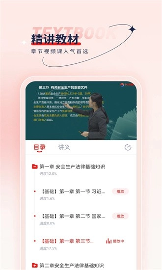 3.视频课程详细讲解重难点,支持章节进度记录便于复习。