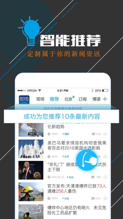 2、汇聚新华社重大时政新闻、主题报道、突发事件、社会热点报道等优势资源,融合大数据、可视化、轻应用、动新闻等全媒体数字产品形态,提供不一样的新闻体验,见人所未见;