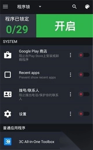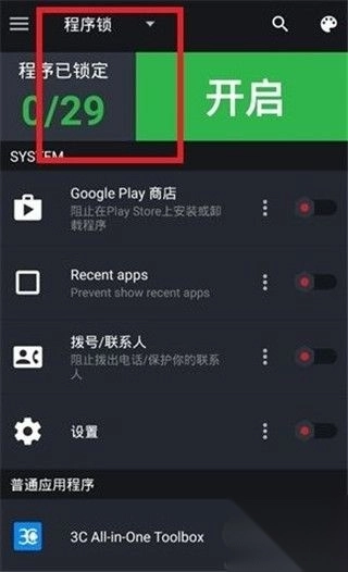 3、程序锁能够为需要保护的应用设置密码锁,其他人在使用这些应用时,必须输入正确密码方可进入。