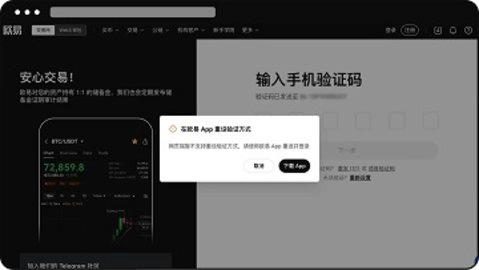 网页端不支持重设验证方式,请使用欧易 App进行重设并登录。