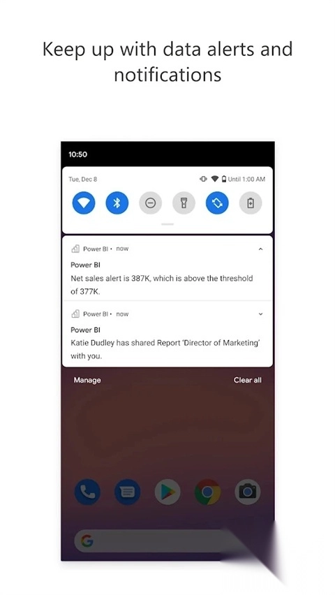 4、通过PowerBI手机版,您能够实现对仪表板的持续移动访问。