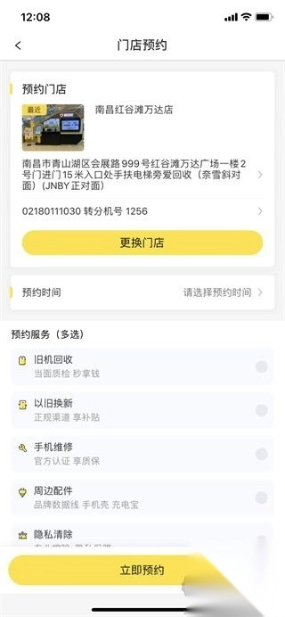 3、最后选择预约门店、预约时间和预约服务,点击立即预约。