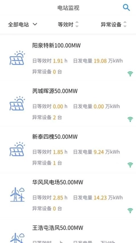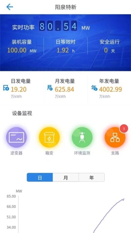 1、用户能够借助统计中心,查看各个电站的实时发电量数据,并通过集中运维系统,全方位知悉电站的发电状况。